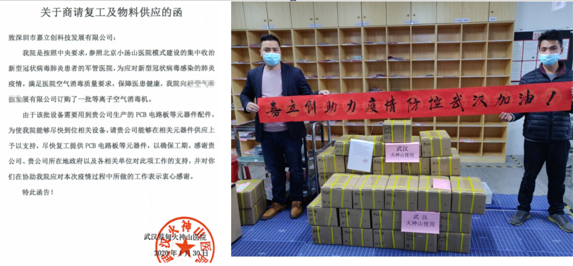 一:“武汉疫情” 嘉立创在行动: