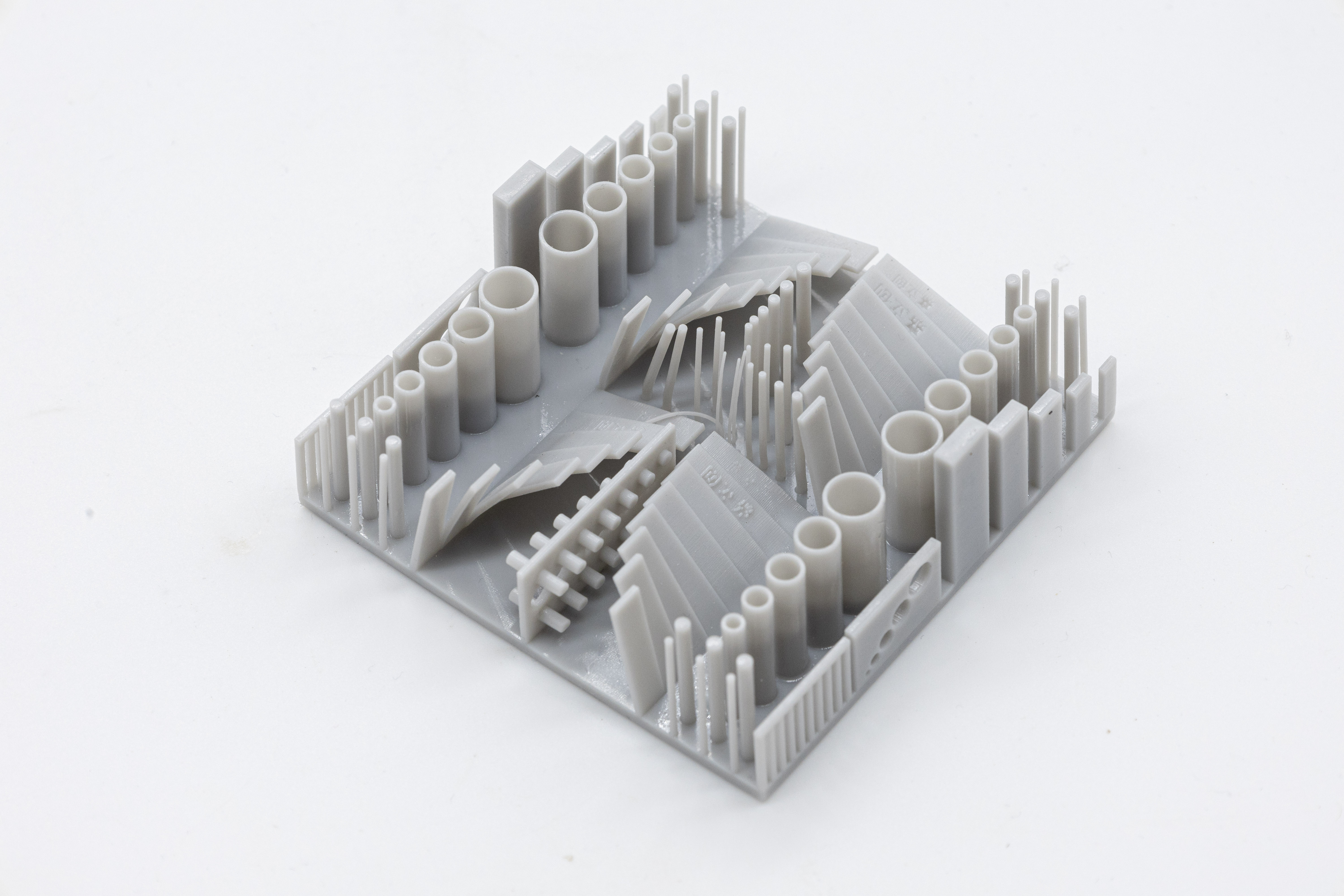 采用低收缩配方设计,嘉立创灰色树脂Grey的尺寸误差可严格控制在±0.2mm或0.3%以内,固化过程中不易出现翘曲、变形等问题,能够精准还原设计图纸中的细微结构,包括精密卡扣、齿轮、螺纹、镂空腔体等复杂部件。无论是小尺寸精密件还是大尺寸结构件,均能保持优异的尺寸稳定性,满足工业级装配要求。