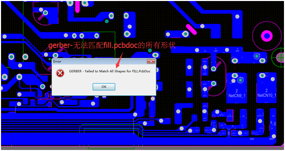 如下图生成GERBER文件发现提示问题报告反馈gerber-无法匹配fill.pcbdoc的所有形状。